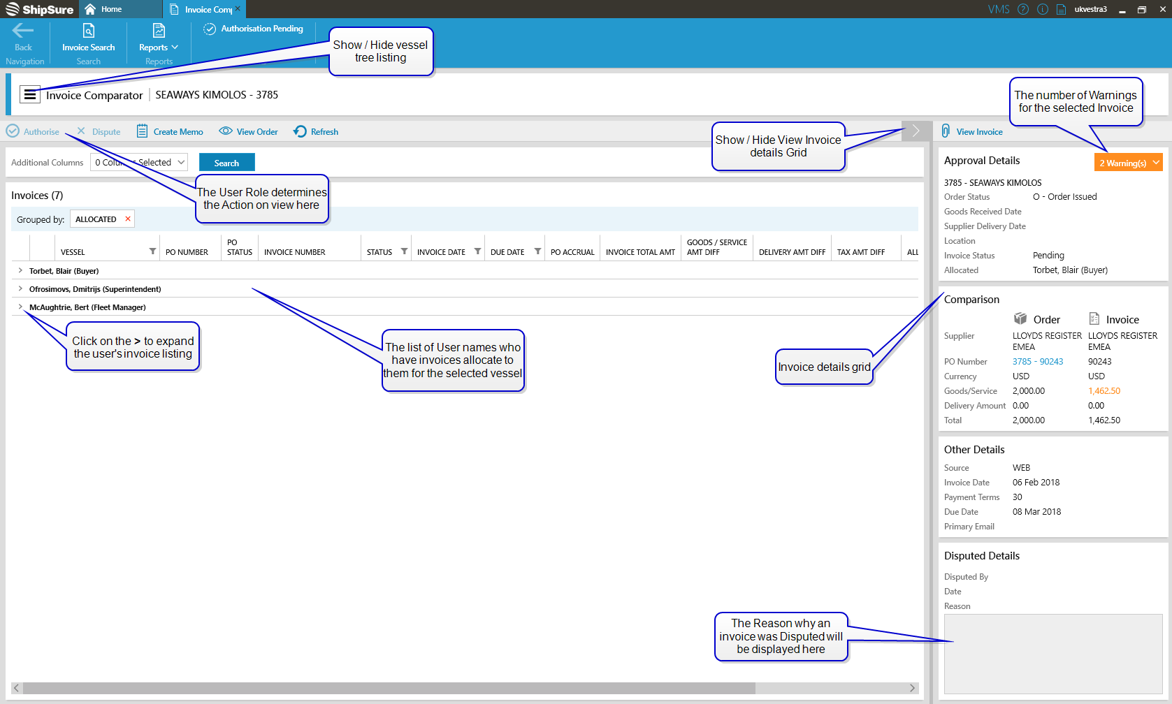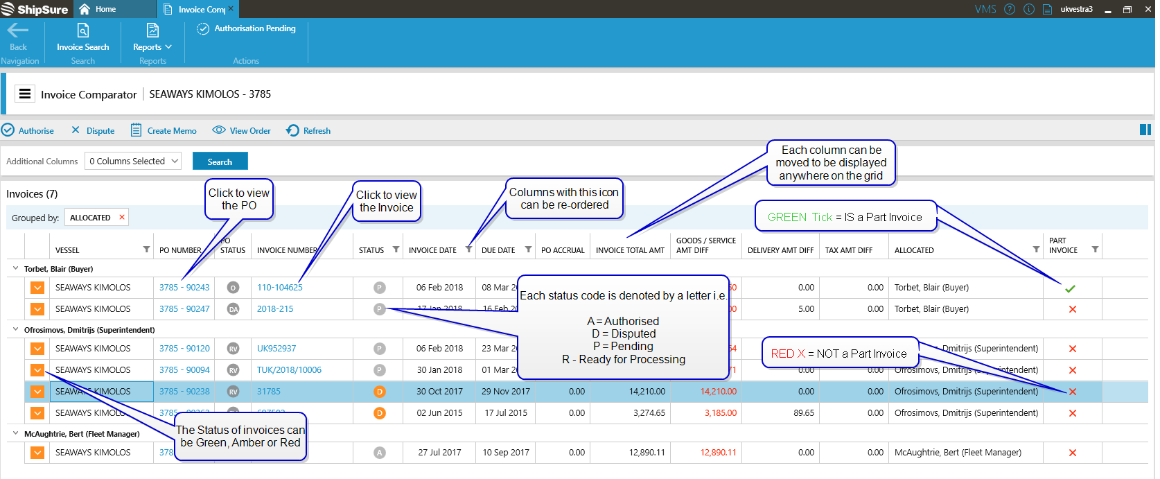 - Buyers, Technical Superintendents & Controllers will jointly see invoices for all vessels assigned to them and to the Fleet Manager.