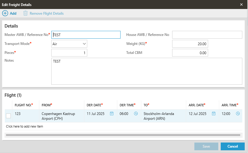 - Click [Save] to add the freight details to the list.