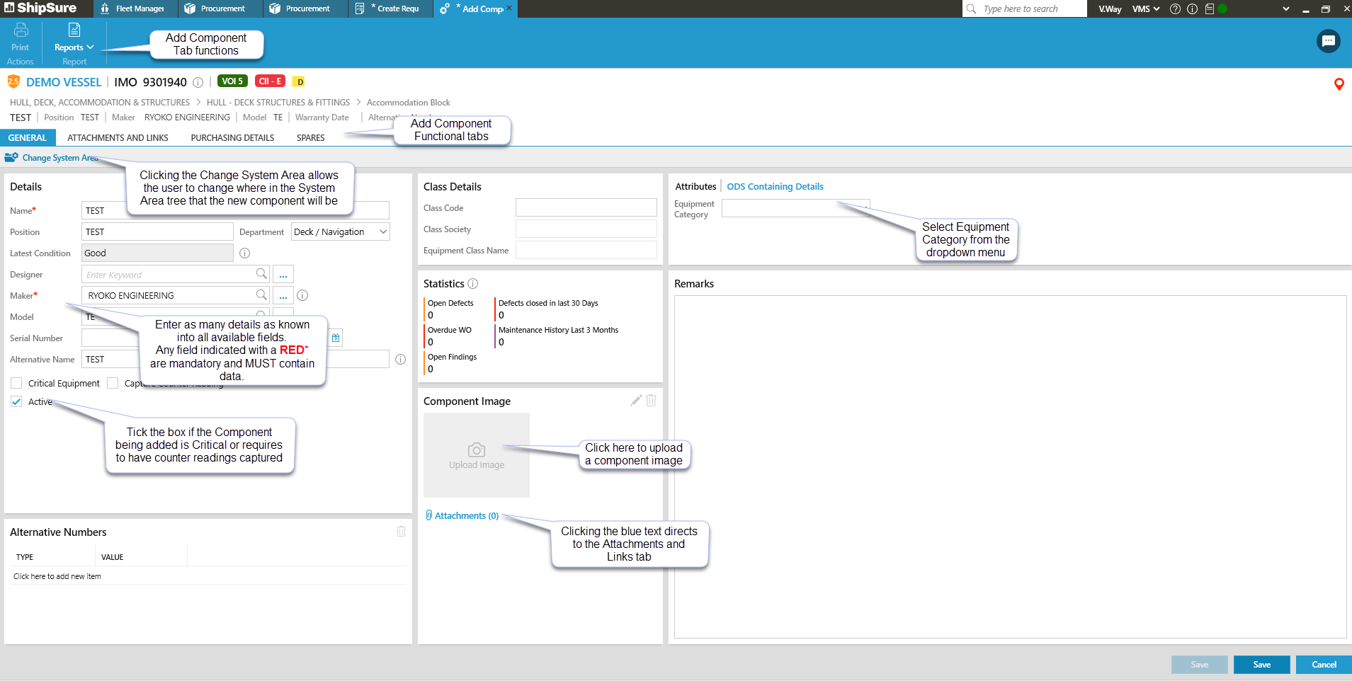 The Add Component Tab will open allowing the user the enter the new component details.