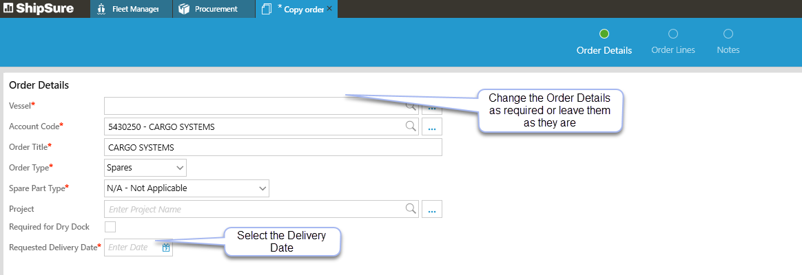| Introduction: | This topic explains how to copy an existing order to create a new requisition. |