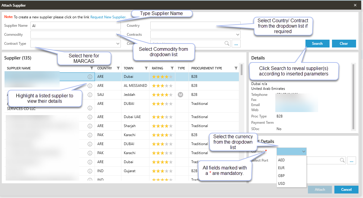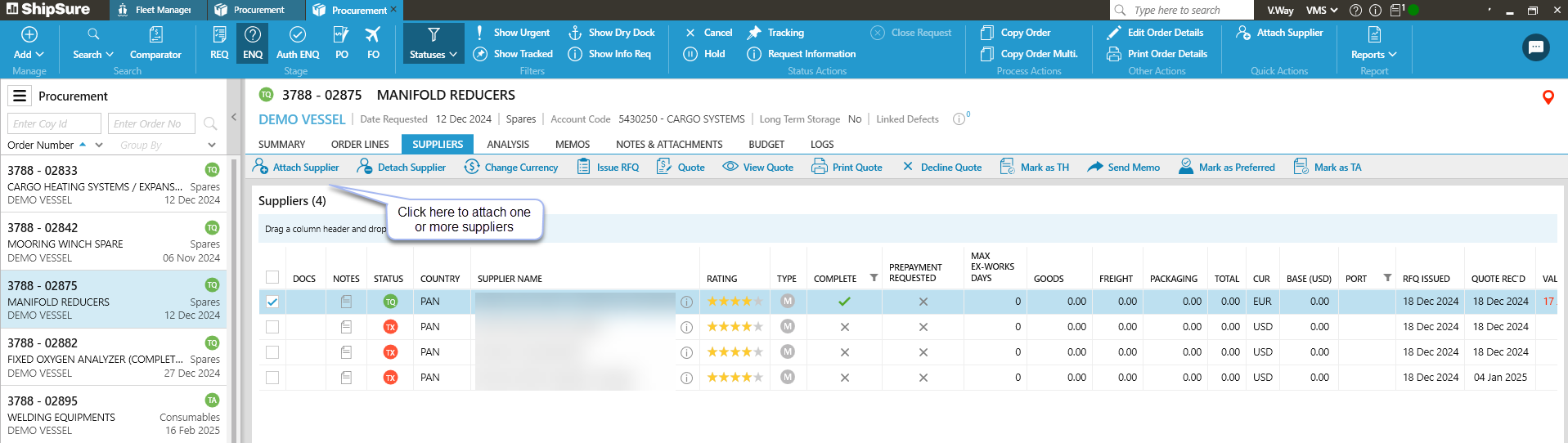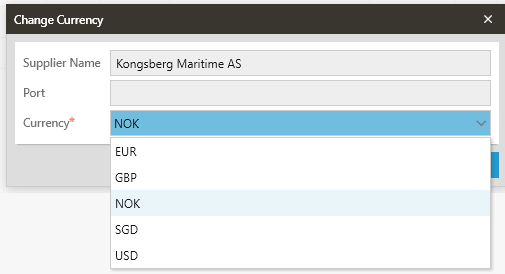 It is also possible to add the same supplier to the order more than once, e.g. for different currencies or delivery ports.