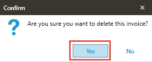 Confirm that the selected invoice is to be deleted
