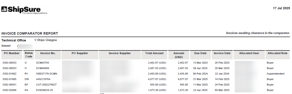 All of the invoice comparator reports include the invoice number, and both the PO supplier and invoicing supplier.
