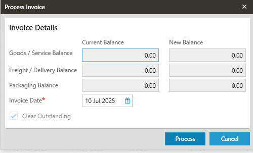 icon to open and complete the Process Invoice window.